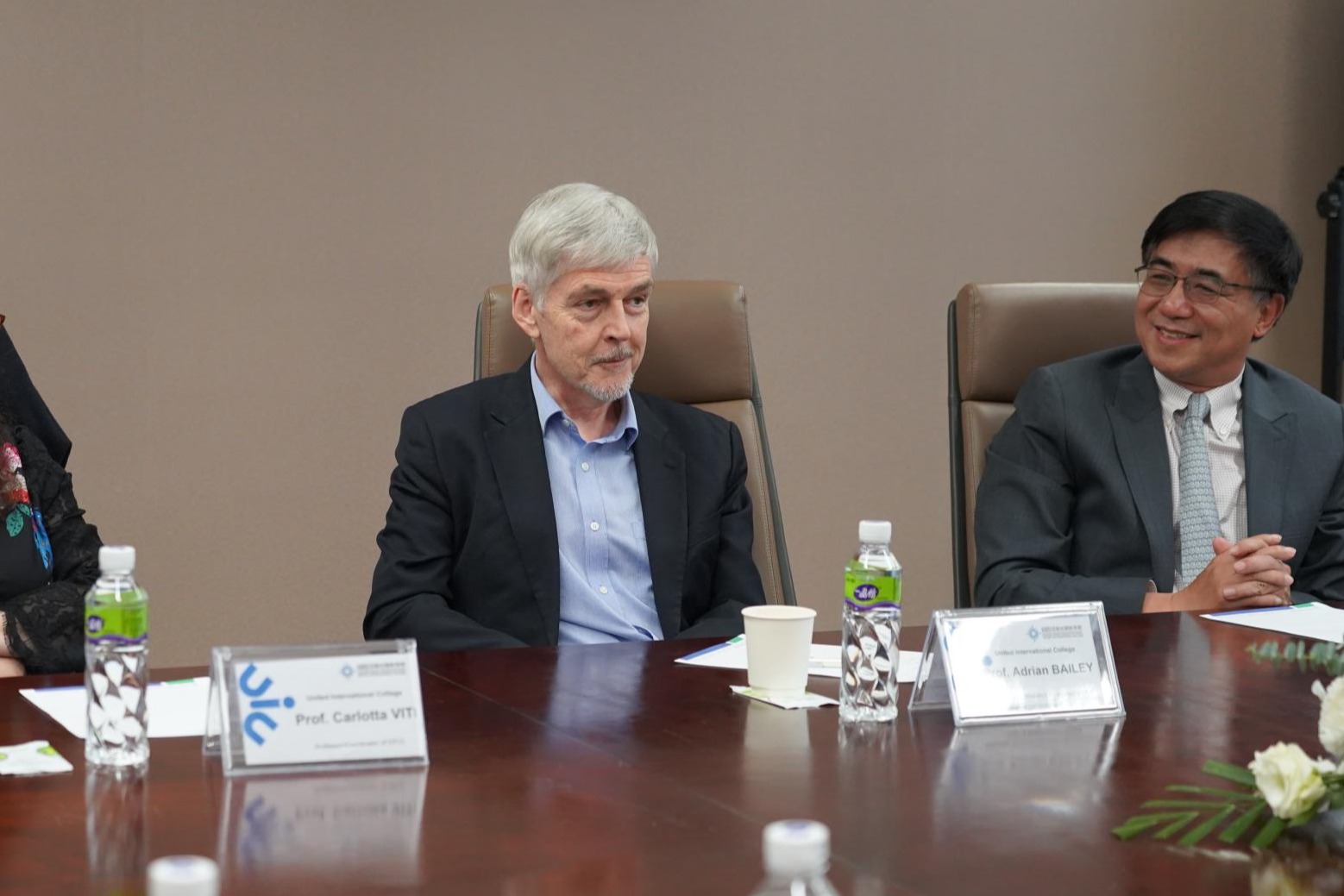 UIC President Prof Tang Tao warmly welcomed Mrs Lucia Pasqualini and Mr Giorgio Daviddi to UIC's beautiful campus. Prof Adrian Bailey, UIC Associate Vice President (Internationalization) and Dean of the Division of Humanities and Social Sciences, joined the warm welcome.