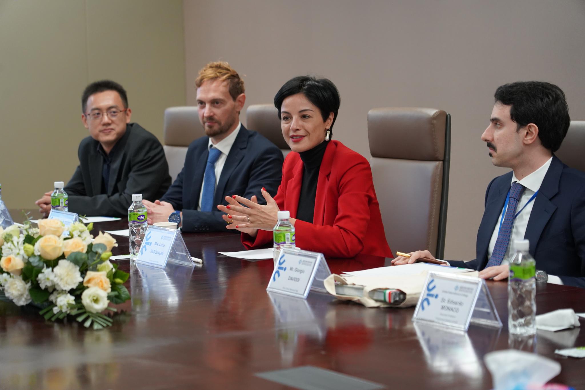 Mrs Pasqualini indicated that donations of Italian books cultural exchange activities within the province would be a promising start. After a very productive exchange of ideas, Mrs Lucia Pasqualini and Mr Giorgio Daviddi continued with a meeting with Italian faculty members at UIC, including Prof Carlotta Viti, Professor and Coordinator of CFLC; Dr Edoardo Monaco, Associate Professor and Programme Director of Globalisation and Development; Assistant Professor of Divison of Science and Technology, Dr Hu Yujia; and Associate Professors of Division of Culture and Creativity Dr Vincenzo De Masi and Dr Luciano Zubillaga.