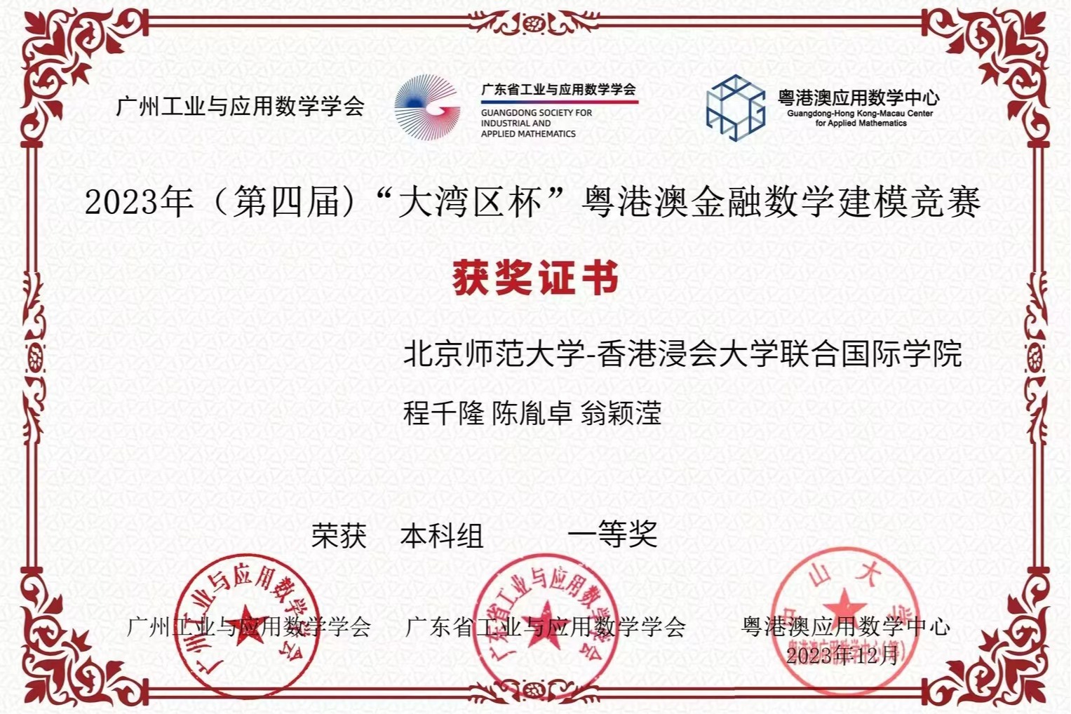 The results of the 4th Greater Bay Cup Guangdong-Hong Kong-Macao Financial Mathematics Modelling Competition have been announced. Nine teams from UIC's Faculty of Science and Technology, School of Culture and Creativity and Faculty of Business and Management won one first prize, one second prize, two third prizes and five winning prizes.