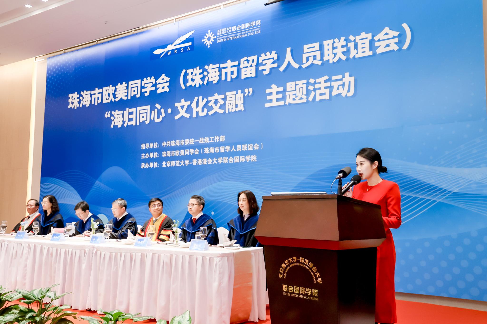 Member of the Chinese Academy of Sciences, UIC President and Chairman of the Association's Zhuhai Branch Prof Tang Tao introduced UIC's educational philosophy, resources and achievements, and later delivered a speech to inspire the talents who have studied abroad to contribute to the nation's development.