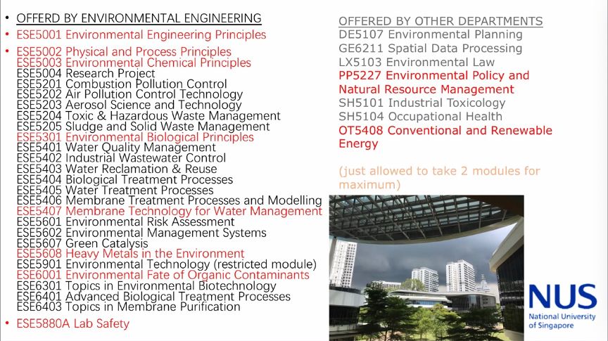 Fan Changchang listed courses for the programme she’s currently enrolled in -- Environmental Engineering Programme at the National University of Singapore.