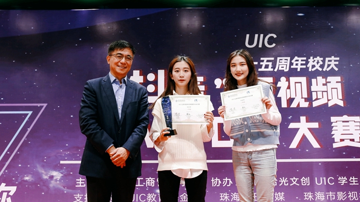 The creators of the first-prize winning piece "three-quarters of the time" are fourth-year students from Cinema and Television Programme, Liu Xiangran and Chen Luyue. The work tells the story of their college life and experience growing as UICers.