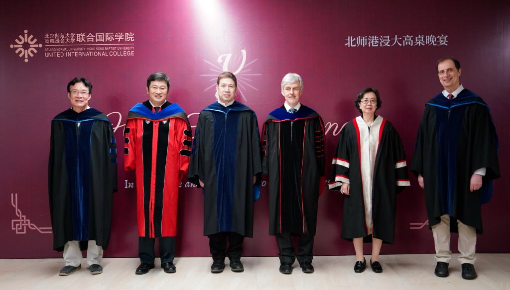 Some 150 students attended the dinner and, as High Table Guests, by relevant representatives of UIC’s management and faculty, including Prof Chen Zhi, Provost; Prof Stella Cho, Associate Vice President (Student Development); Prof Adrian Bailey, Associate Vice President (Internationalization) and Dean of DHSS (also Chairperson of the High Table Dinner); Prof Simon Zhao, Associate Dean for Research and Development of DHSS; Dr Charles Lowe, Associate Dean for Learning, Teaching and Student Experience of DHSS; Dr Edoardo Monaco, Programme Director of Globalisation and Development (GAD), who facilitated the event, given his long-standing research cooperation with CBCGDF, and served as MC for the evening.