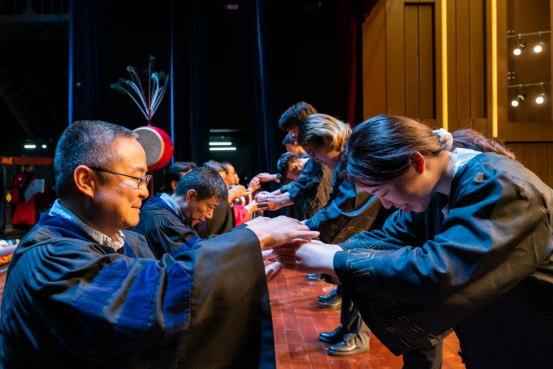The ceremony began with three rounds of drumming. Then, the teacher dressed the students. During the ceremony, students serviced tea and bowed to teachers. Finally, students read out passages to show their respect and appreciation towards their teachers.