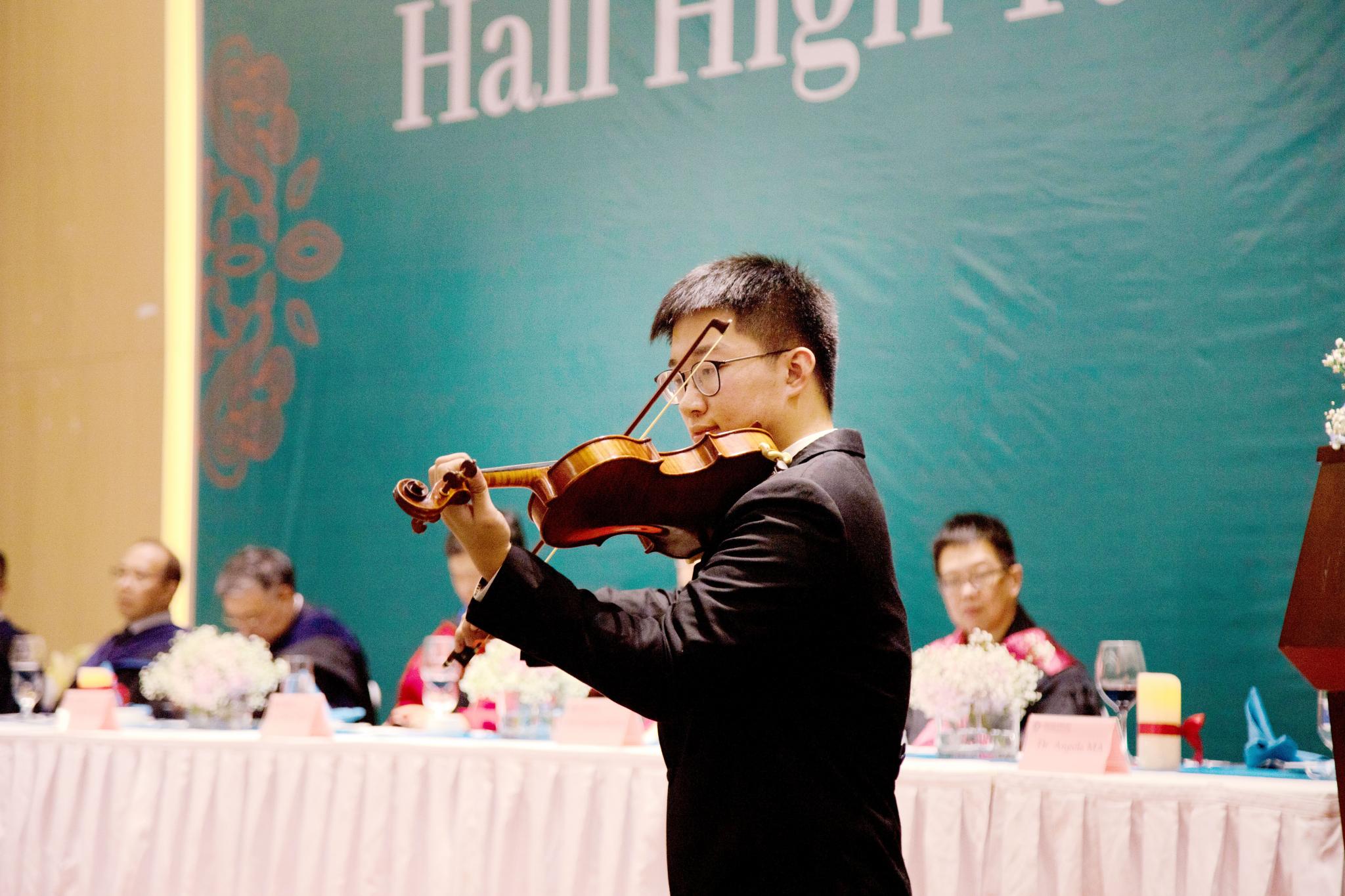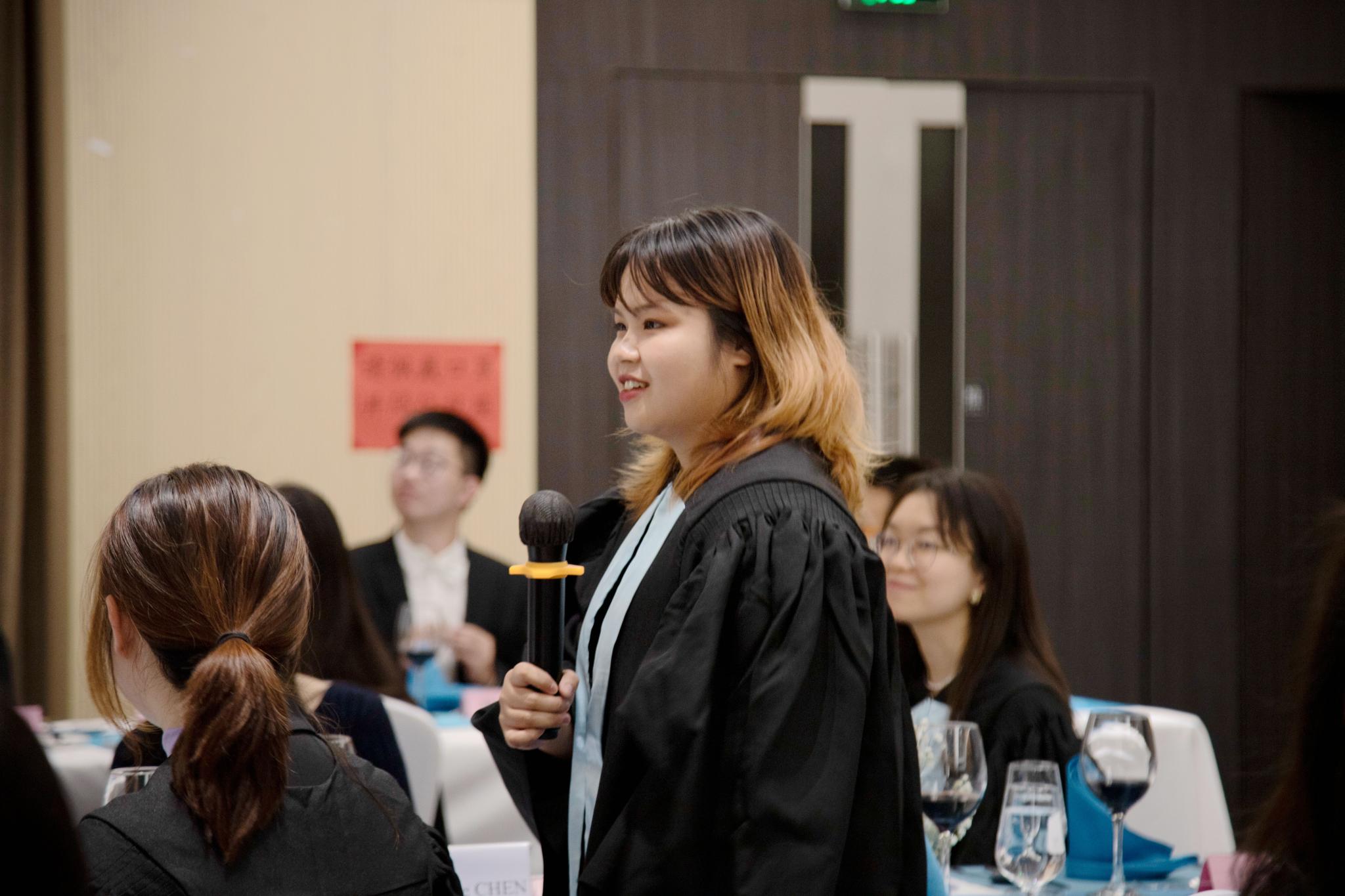 Student representative Cai Yidi from Student Hostel Council gave a speech during the high table dinner, addressing the significance of the Student Hostel Council as a bridge between the college and students.