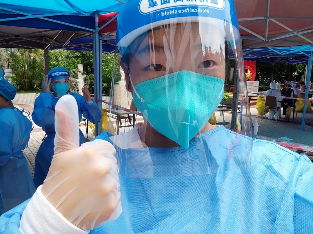 Sirong assisted in mass nucleic acid testing and vaccination. It was the height of summer during her service time. Under the scorching sun, she had to put on a protective suit and other equipment before working. As a result, her sweats kept flooding, and she was exhausted at the end of the day.