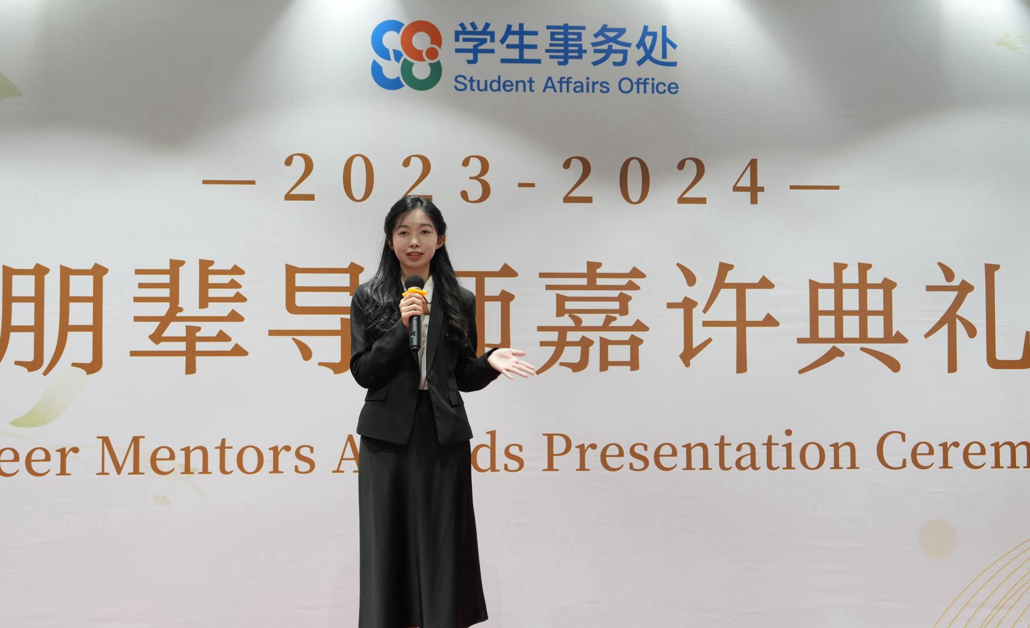 On 23 May 2024, a ceremony was held and Mi shared her experience as a representative of the peer mentor team. She talked about her experience of organising activities during orientation week to help newcomers understand school life better. She found that by helping first-year students clarify their thinking, she had deepened her understanding of career paths: "I became clearer about what choice would benefit me."