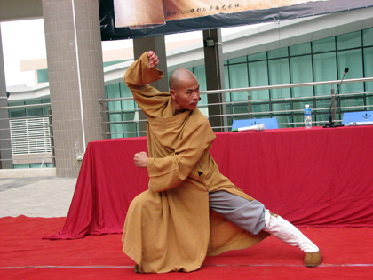 Deyang: No, I can’t. If the secret is out, everyone can practice Shaolin Kung Fu (laugh). Actually we get up at 4:00 in the morning for the matins, and then have breakfast at 6:00. We are free then until 8:00 when we start our daily duty. Some of us will patrols around the temple, and some will guard the temple halls. Just like you study for knowledge, we must practice a lot by ourselves to master the skills.