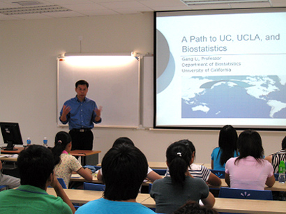 Prof. Li Delivering a Talk “A Path to UC, UCLA and Biostatistics”