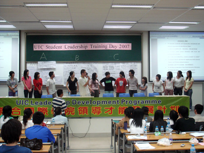 There were around 100 students who had taken part in the program. The whole day training was begun with the welcoming remarks by the chairman of the Staff and Students Relation Committee, Prof. Sarker. During the training, Mrs. Maria Shing (Director of Student Affairs) introduced the concept of “Servant Leadership”. As follow, Mr. Johnston Huang (Director of UIC Volunteer Service Development Centre) and Mr. Y. F. Ng (Head of Counseling and Personal Growth Unit) shared the knowledge and experience of organization management, student activities planning and budgeting, as well as skills for holding meetings.