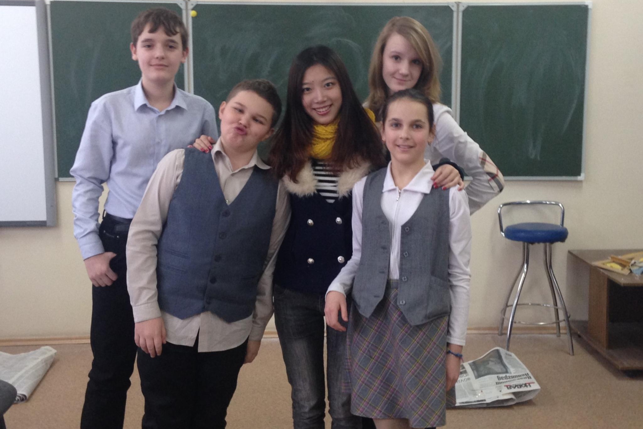 Mao (middle) volunteers in Russia while studying at UIC, teaching students to use software including Photoshop