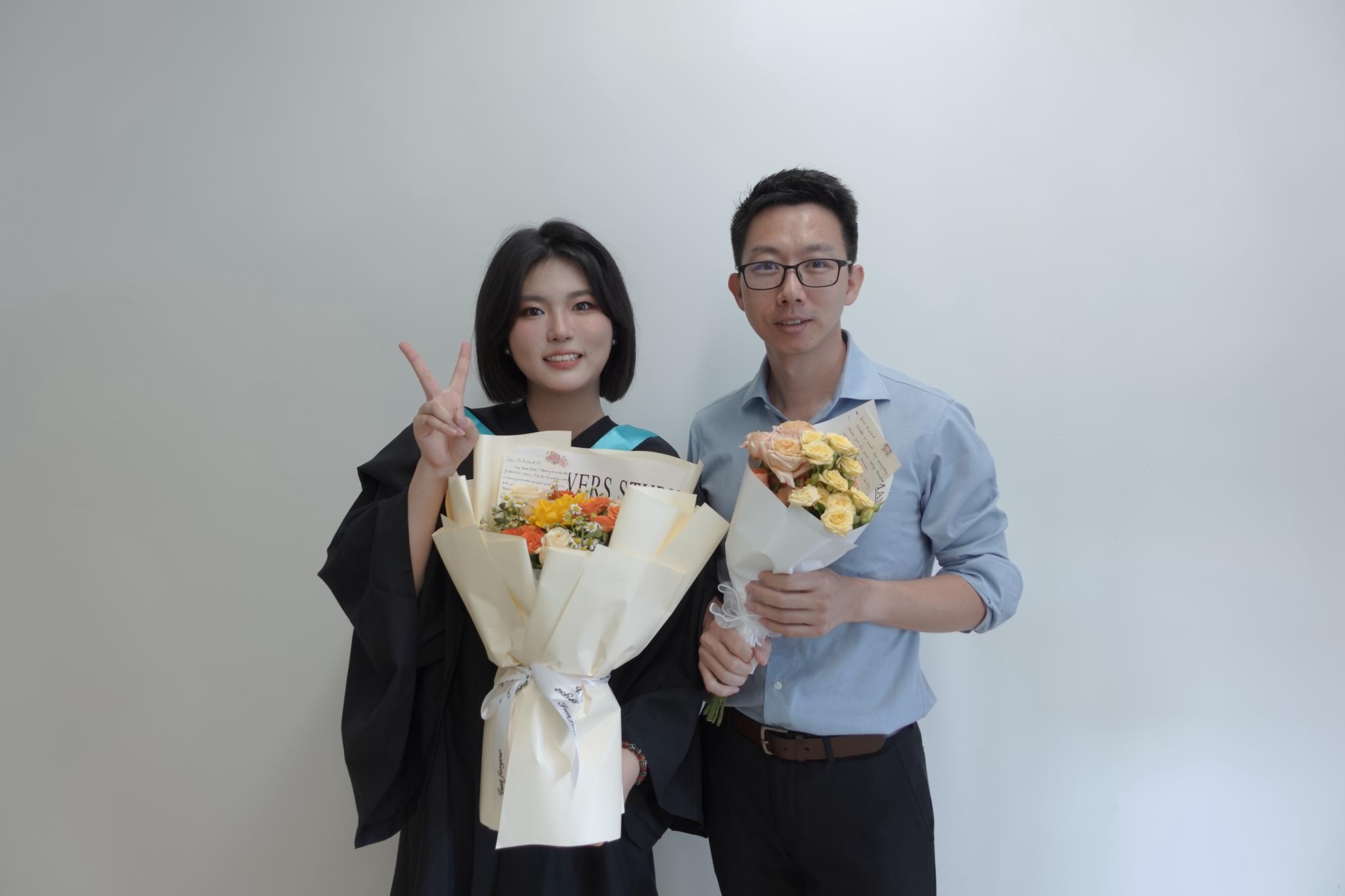 Ding Ziyi (left) with Associate Head of Department of Communication Dr Xu Xiaying