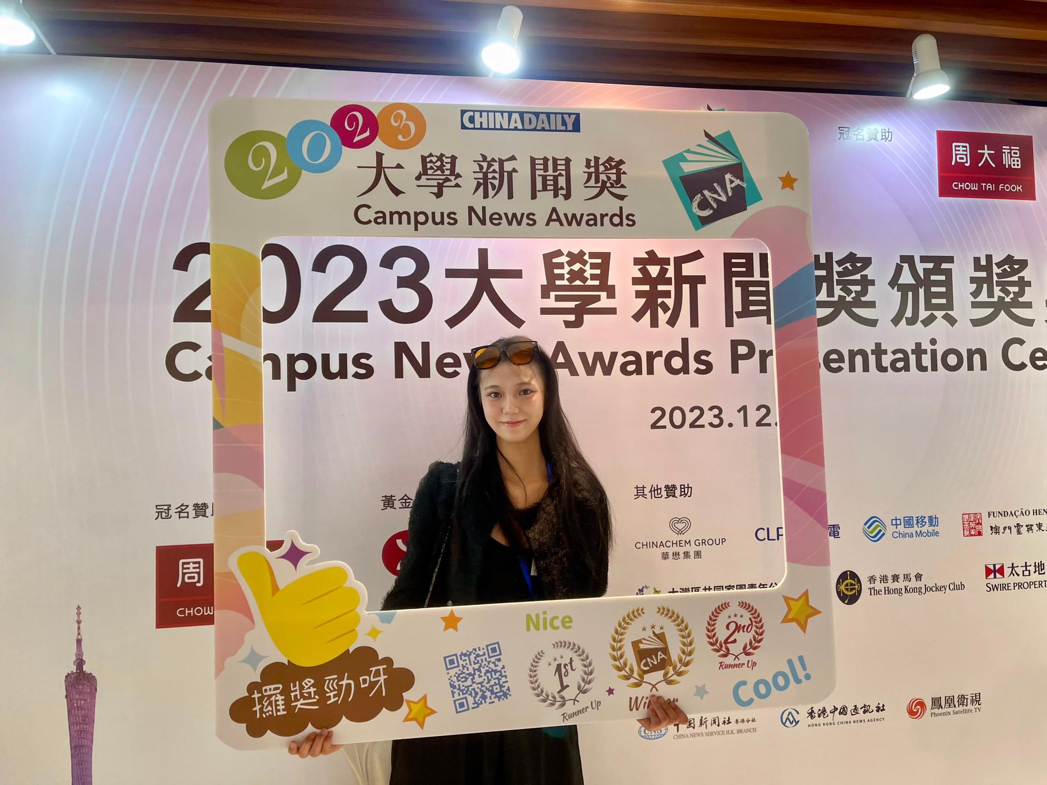 To put what she had learned into practice, Cheng seized the chance provided by the Faculty. During her second year, Cheng participated in the Campus News Awards organised by China Daily, winning Best in News Photography with a series capturing police teaching stories. She joined the same competition a year later and shifted her focus towards data journalism, an area where she excelled. This time, she brought home the Best in Data Journalism with her piece “Facing Rumors, for future clarification and regulation”.