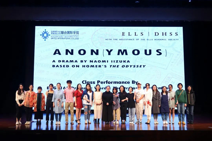 Min Yusi (tenth from right) and her classmates after their drama performance 'Anonymous'