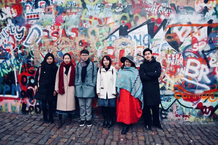 Liu Jialiang (third from left) and his classmates during a study tour in Vienna