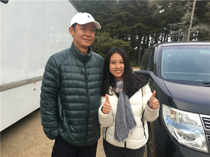 Zhang Xinyu (right) with famous actor Wang Zhiwen (left)