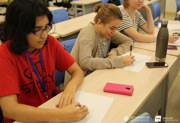 Celeste and classmates drawing during a CLC lecture about a cartoon version of "Journey to the West"