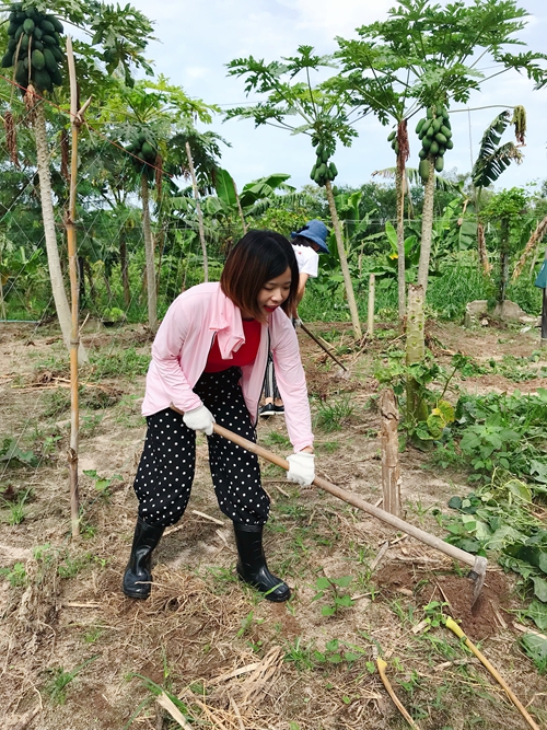 Irin helping with farmwork in Thailand in 2018