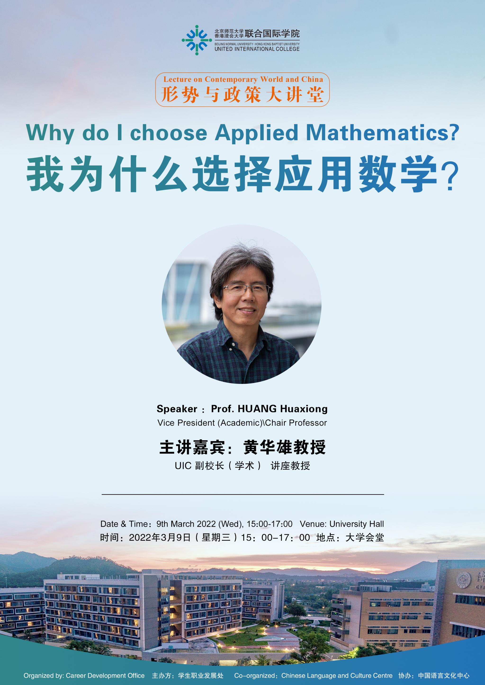 It is our honor to have invited Professor HUANG Huaxiong (Vice President -Academic/Chair Professor) to share his fruitful life and career experience with us! The lecture will be delivered on 9 March, 2022. You are cordially invited to join us.