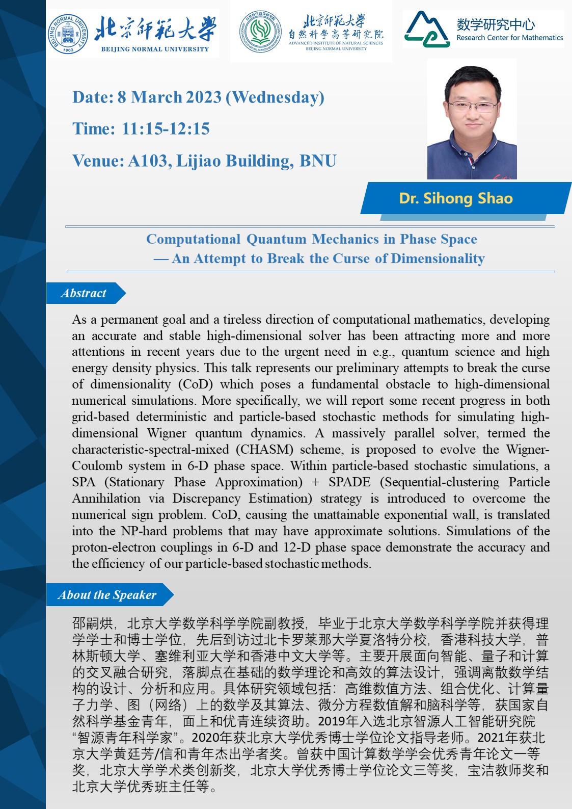 Venue: A103, Lijiao Building, BNU