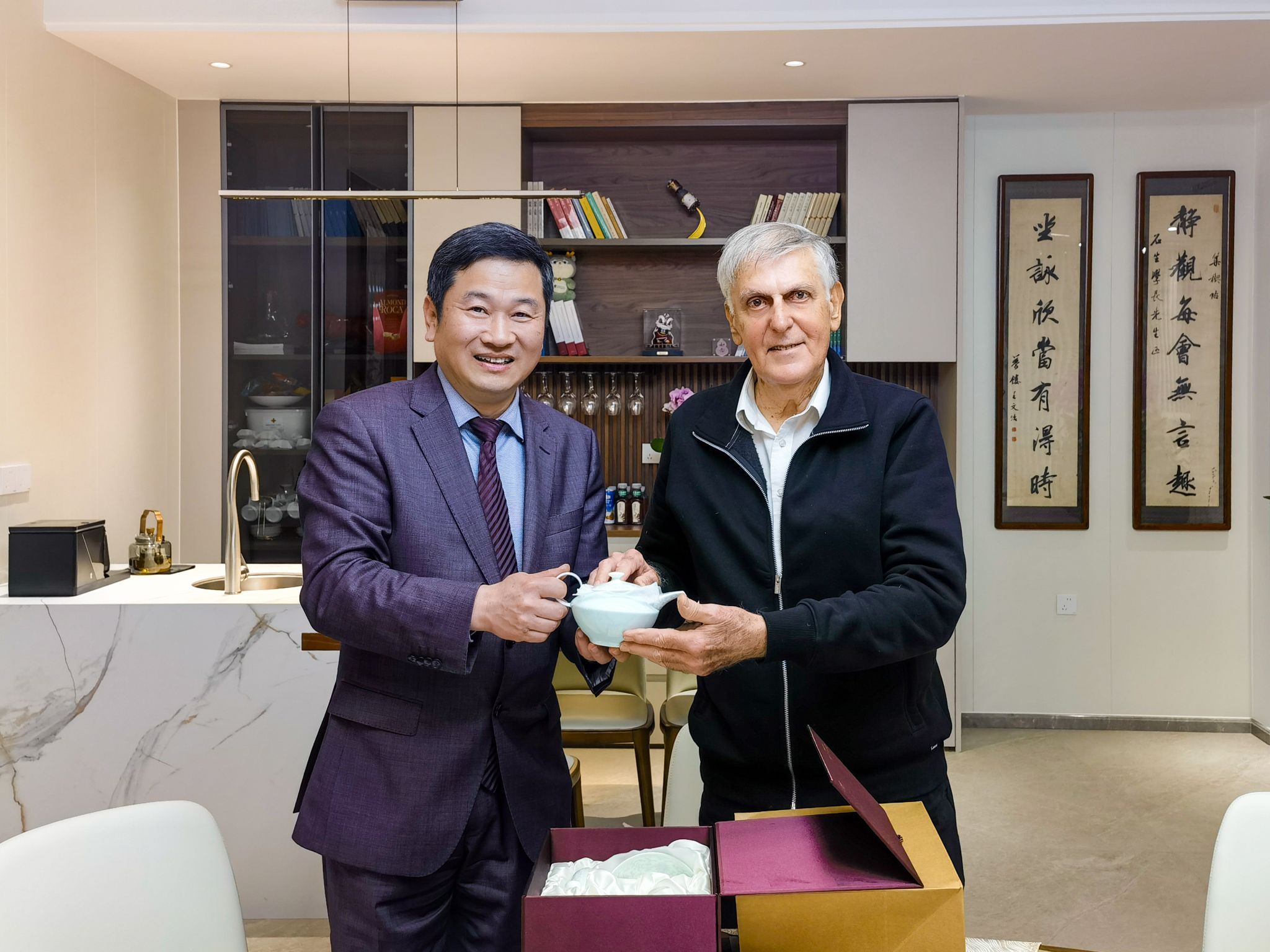 Prof Dan Shechtman and Prof Chen Zhi exchange souvenirs