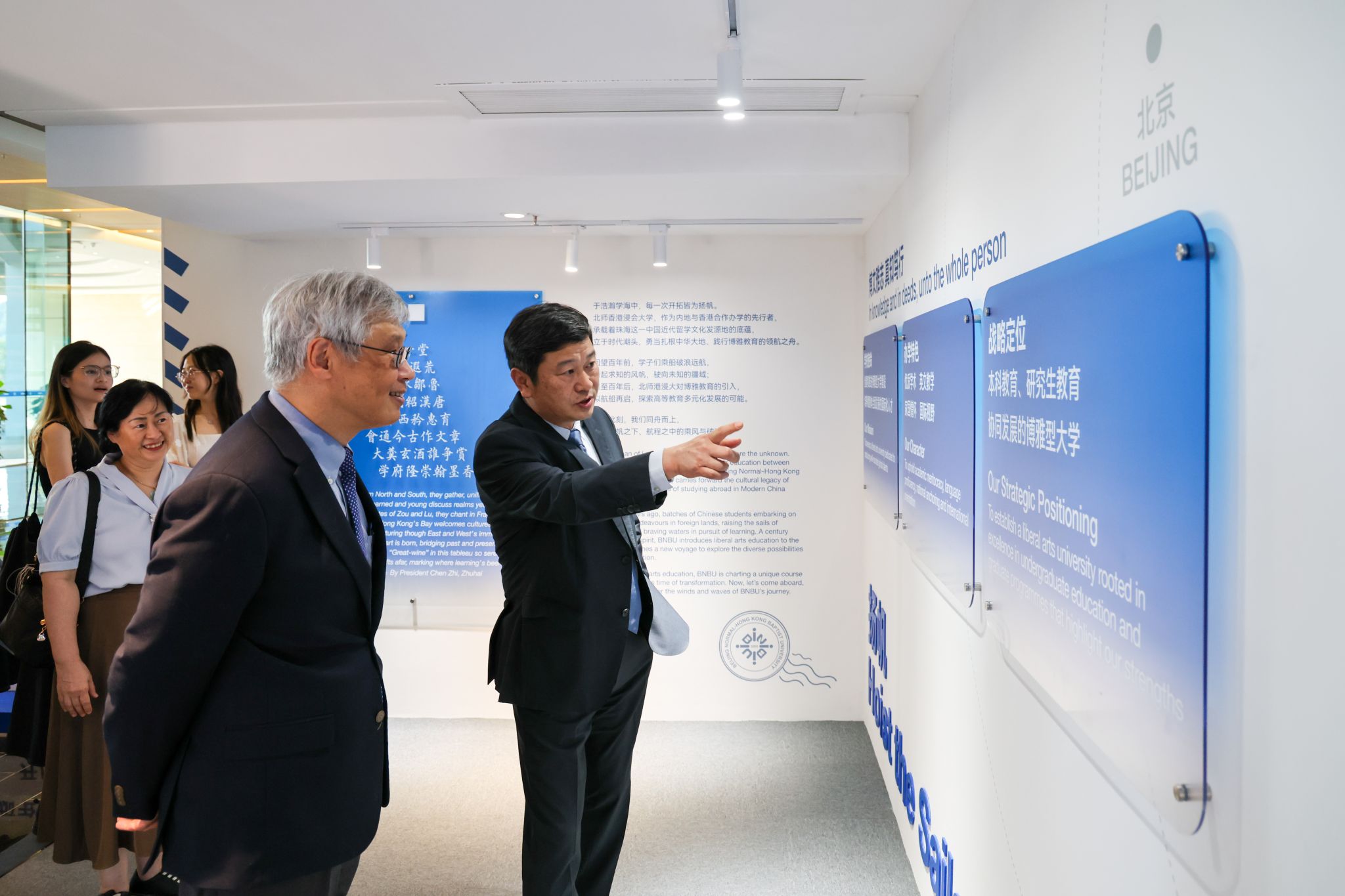 王德威教授(左)与陈致校长参观学校品牌展厅