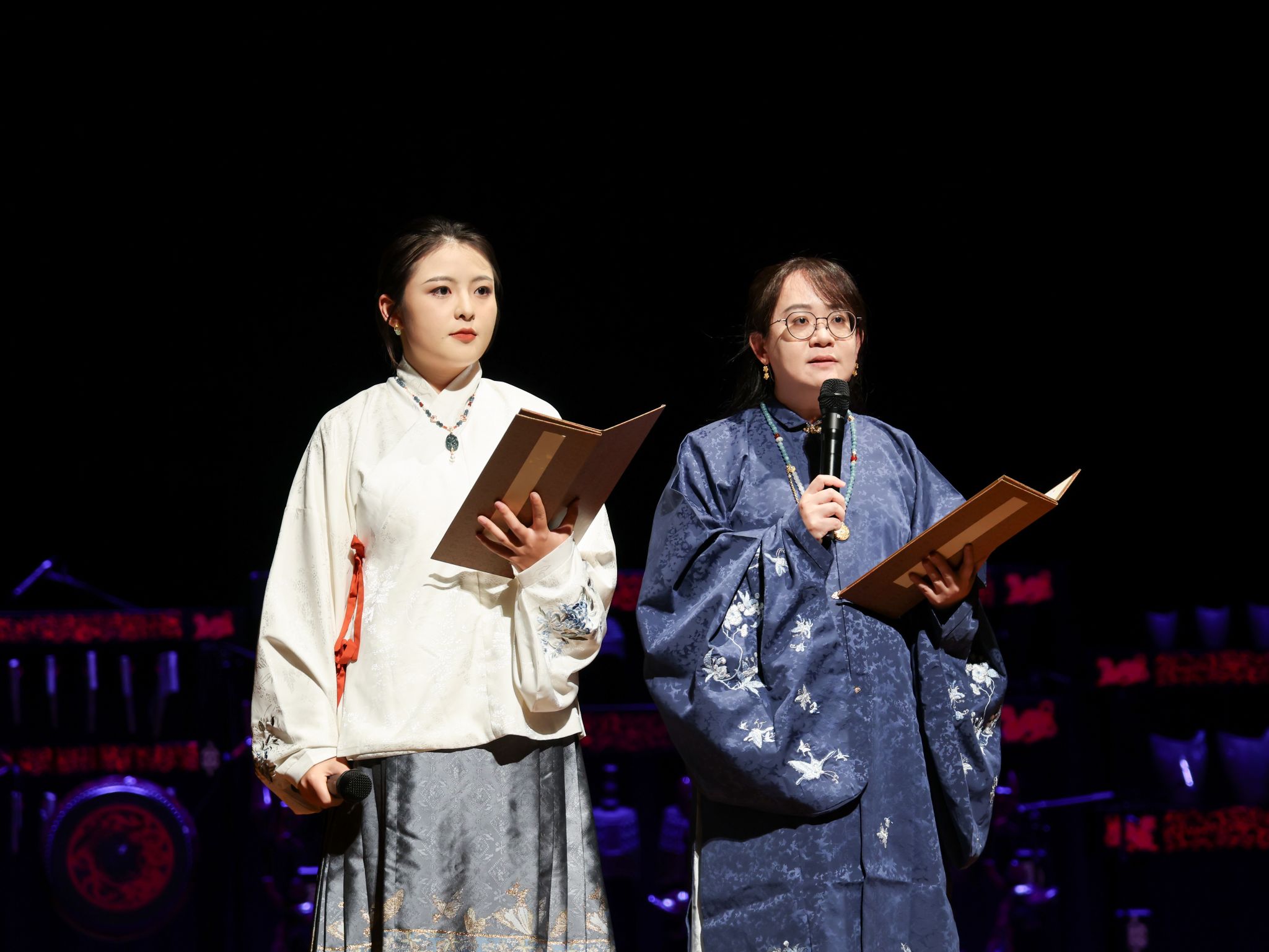 在香港站的演出中,玉振金声雅乐团运用编钟、句鑃、建鼓等中国古代乐器,融合礼、乐、舞,呈现了《朝乐-文舞》《秋夜读易》《大濩》《建鼓迎宾》《楚商》《剑器浑脱》《望月婆罗门》《盈袖暗香来》《龙腾虎跃》九个精彩节目。此外,雅乐团总指导叶佳颖博士亲自登台进行导聆。通过生动细致的讲解,观众不仅能领略乐声之美,更能理解乐曲背后的文化气韵,使古老音乐更亲切地走入大家心中。