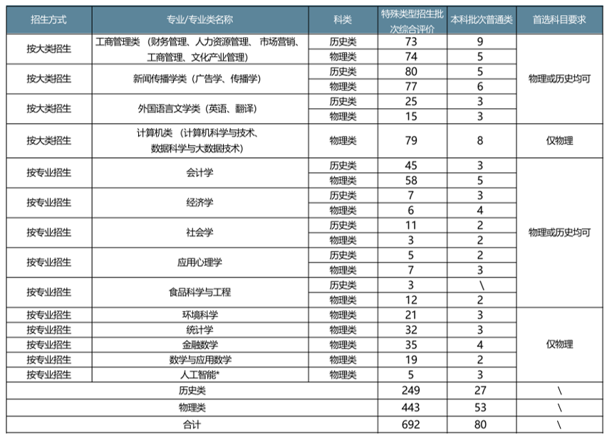今年UIC继续在广东省实施多元化招生,综合评价录取计划招生人数692人(首选科目历史249人,首选科目物理443人),普通本科批次计划招生人数80人(首选科目历史27人,首选科目物理53人)。