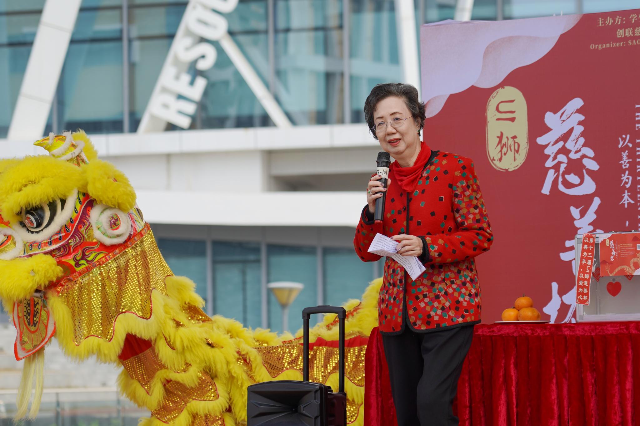 北师港浸大协理副校长(学生发展)、通识教育学院署理院长左龙佩兰教授在中和广场为师生送上新年祝福。她表示,北师港浸大通过醒狮“采青”活动,让师生感受中华文化的独特魅力,领略国学礼仪风尚。希望通过UIC慈善杯活动,点燃师生的慈善之心,更多关注弱势群体,帮助更多需要帮助的人。