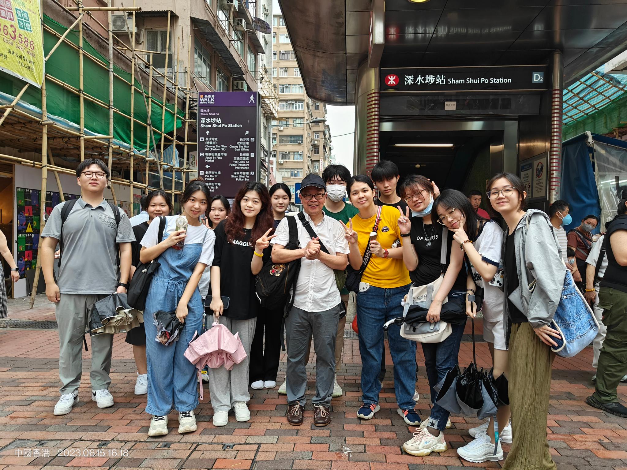 杨佳宁(左一)与老师、同学们齐赴香港深水埗社区实地考察