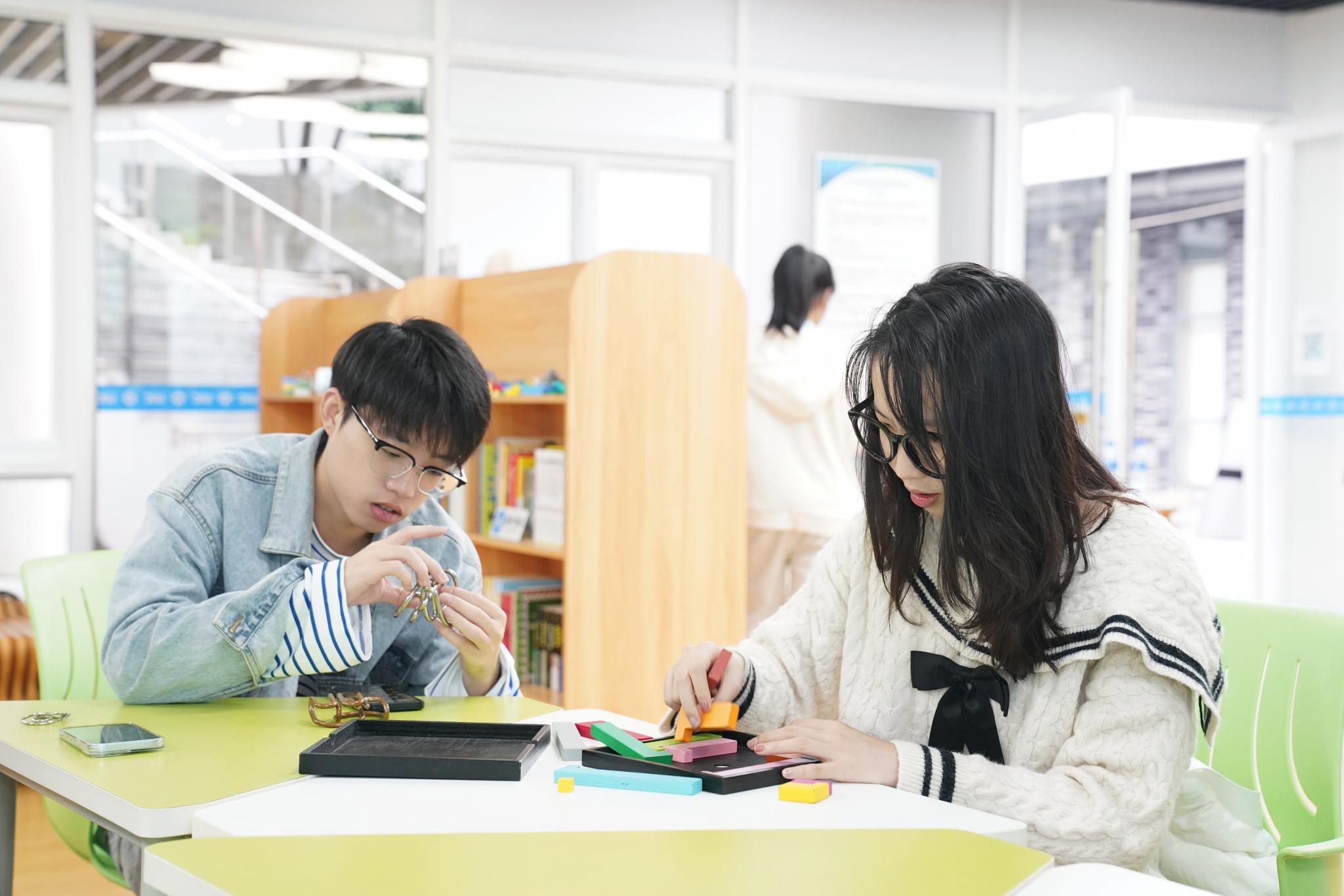 11月24日,与会者们参观了北师港浸大数学体验馆,在数学家历史墙交互展览、基于数学公式的AR体验与Zometool(STEAM益智玩具)、巧环、金字塔系列、解绳游戏等益智玩具和游戏的体验中感受数学的魅力和趣味。