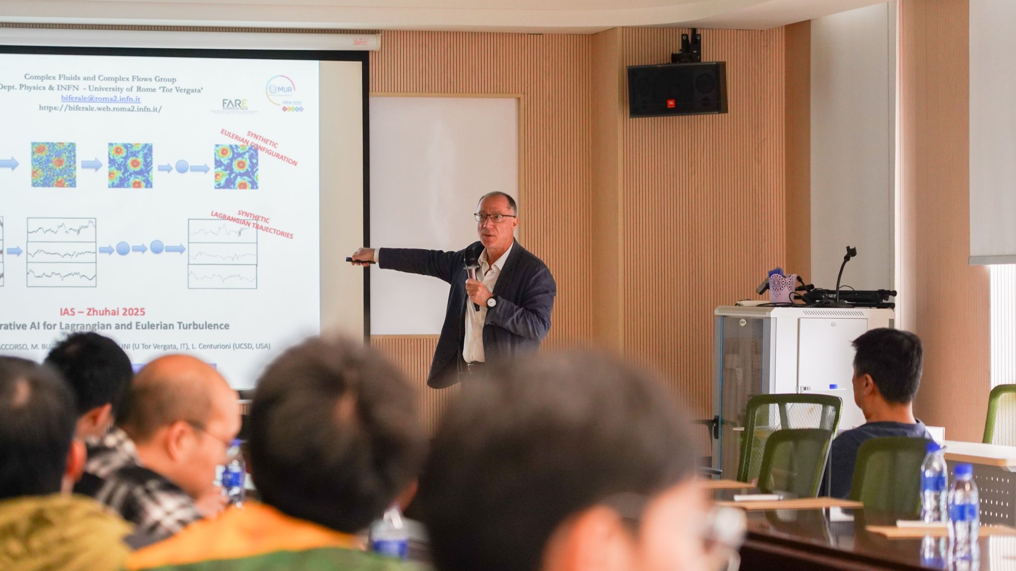 2025年3月11日,北师港浸大(BNBU)高等研究院与数学研究中心联合举办学术讲座,意大利罗马第二大学物理系教授Luca Biferale受邀作“用于拉格朗日湍流和欧拉湍流的生成式人工智能”主题演讲。