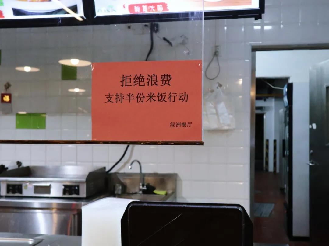 而在部分餐厅自选窗口显眼的位置,也都摆放着“一份米饭吃不完,可以打半份”的告示牌,提醒师生可以提前告知工作人员,按需打饭,打半份饭,收半份饭钱。
