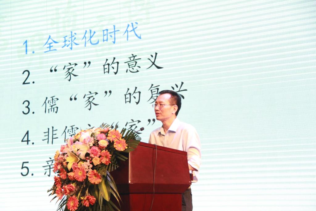 最后,陈建洪教授分别从空间意义、社会关系以及经济单位三个角度向大家介绍非儒学意义上的“家”。并且通过对中国家亲之爱与西方哲学非亲之爱的解读,引出家庭主义文化中以天下为一家的观念,指明在中华民族家而天下的思想背景下结合儒家“亲爱”的观念更能促成人和人之间的合作和和睦。