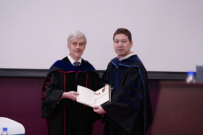 贝力行教授向周晋峰博士致送纪念品