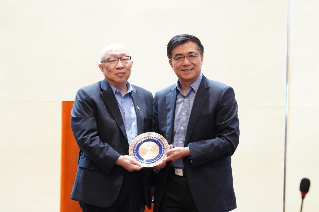 UIC校长汤涛教授热情欢迎赵伟教授的到来,并向他赠送了UIC纪念品。