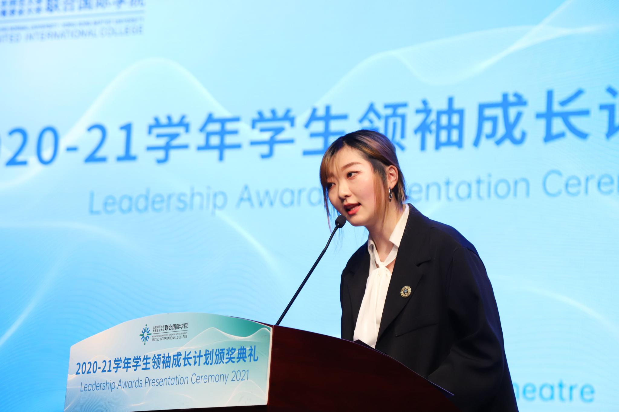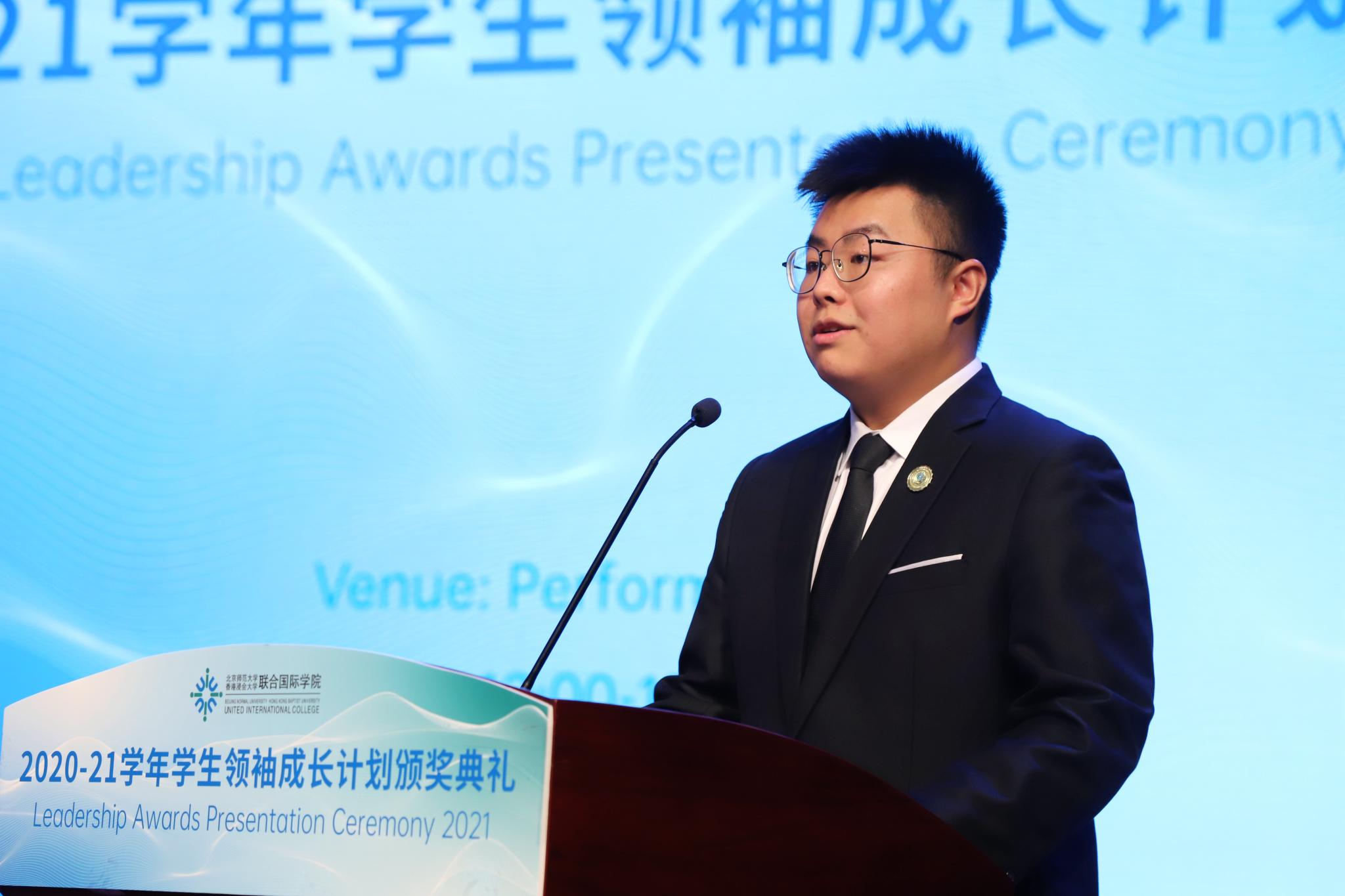 钻石奖获得者、大四政治与国际关系专业的石周明同学回顾了他在UIC四年间参加学生组织的经历,他表示,服务型领导需要具备责任、热情和同理心,善于倾听,勇于承担责任,遇到困难时成为团队的支柱。在UIC,学生组织的锻炼带给他了许多领导经验和能力,让他更有勇气和信心在国际舞台上表达自我。