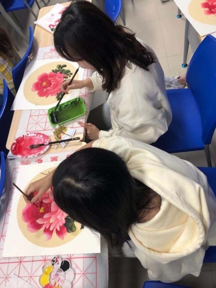 大三应用翻译学的黄思媛是国画课的导师,她并不是单纯地教大家如何作画,而是利用毛笔和宣纸的特性,让大家体验墨色和水分的细致变化和晕染效果,从而实现独特的冥想练习。