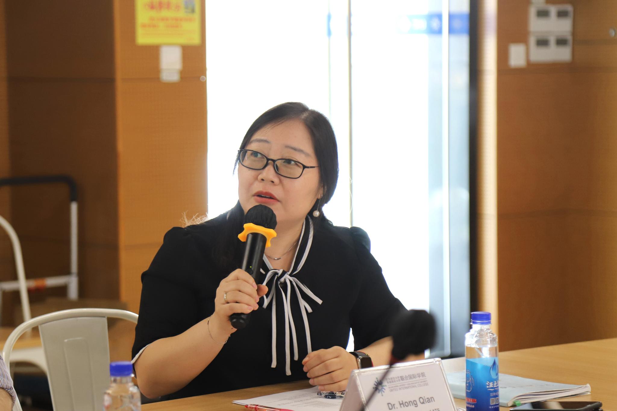 顾问委员会主席郭中实教授分享了他在UIC的教学经验并对UIC的快速发展给予肯定。他建议DHSS多邀请国际学者参与讲座研讨会,提高UIC的国际影响力。孙艺风教授建议学部加强研究,建立教师/学生个人研究档案,同时多参加学术会议。Sarah Miriam Albert女士建议各专业重视毕业生就业问题,要适应市场发展要求,着重培养学生的数据分析能力,并在课程设置上做相应的调整。