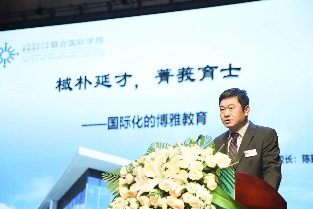 常务副校长陈致教授以“棫朴延才,菁莪育士”为题,介绍了UIC的办学历史、教育特色和发展。陈致教授表示,作为一所博雅型大学,UIC致力于培养具有国际视野和家国情怀的优秀人才,全方位关注学生身心成长和职业规划。