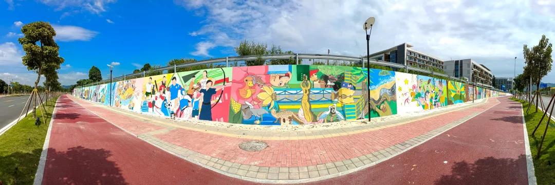 假期到过“大学小镇”骑行、漫步的师生们,也许已经惊喜地发现了,在北师港浸大(UIC)通往会同村的一段绿道上,一面曾经的白墙着上了色彩。这崭新的面貌与出彩的新意,来自UICer的奇思妙想!