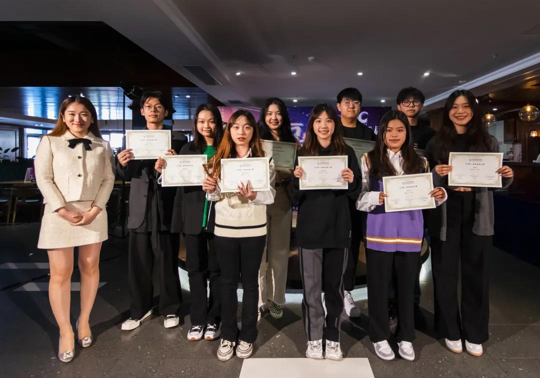 文化与创意学部执行院长蒋崴教授(左一)为最佳创作奖获得者颁奖