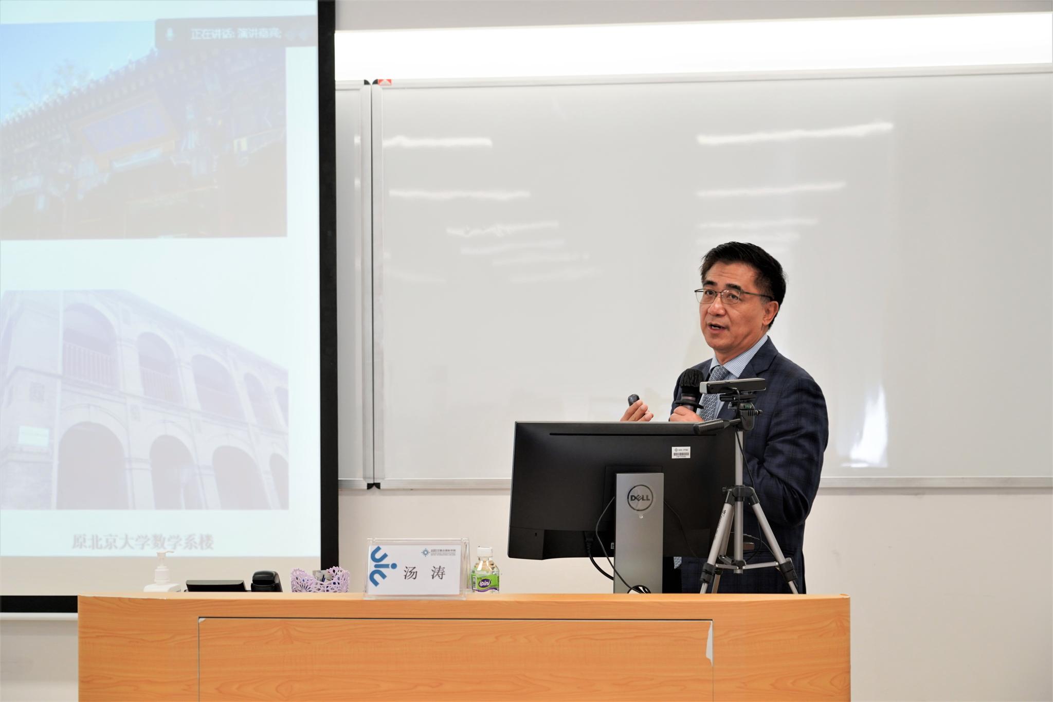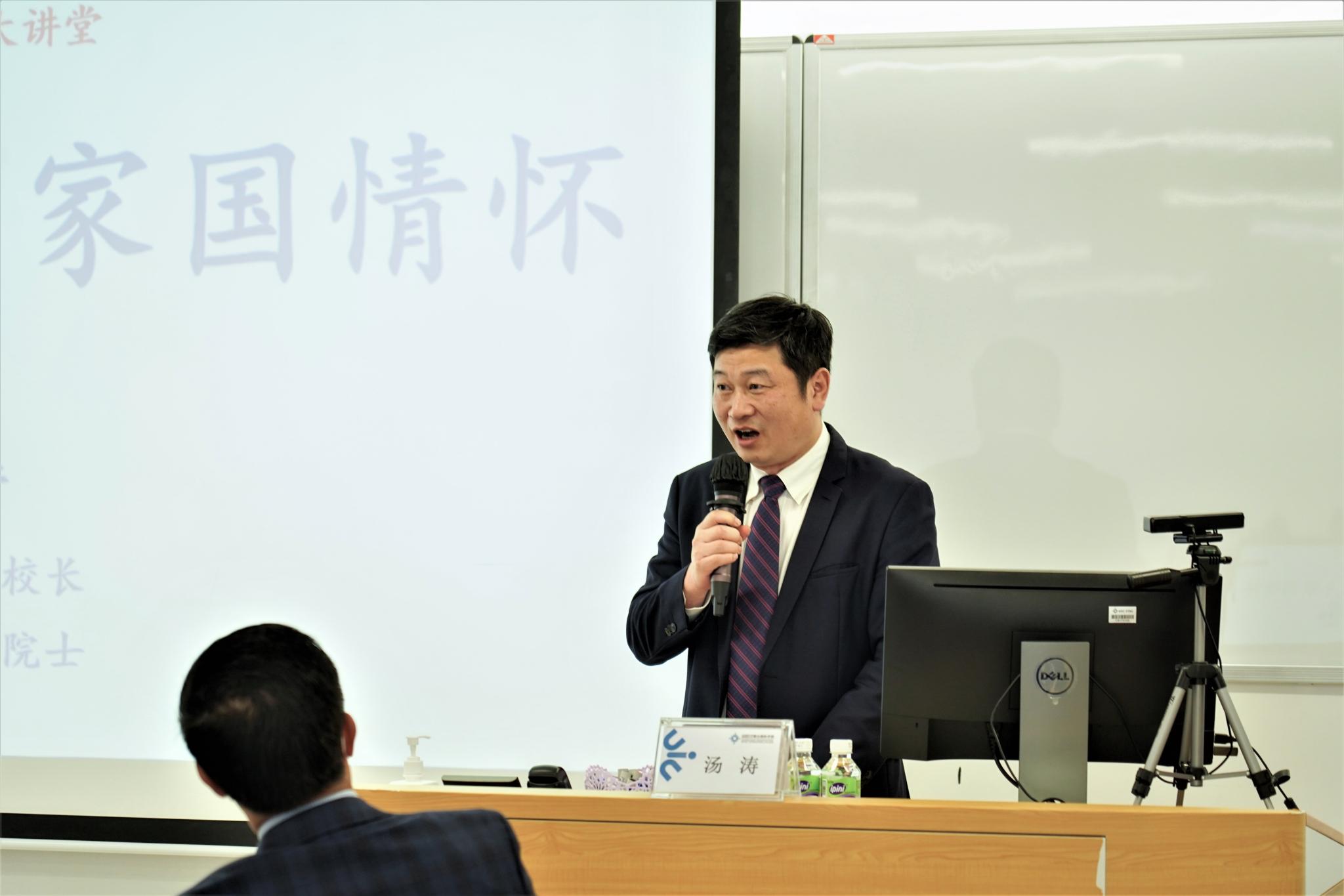 2022年4月6日,中国科学院院士、北师港浸大(UIC)校长汤涛教授为同学们讲授了本学期的“校长思政第一课”,以“现代教育与家国情怀”为题,吸引了线上线下近六百名师生聆听。