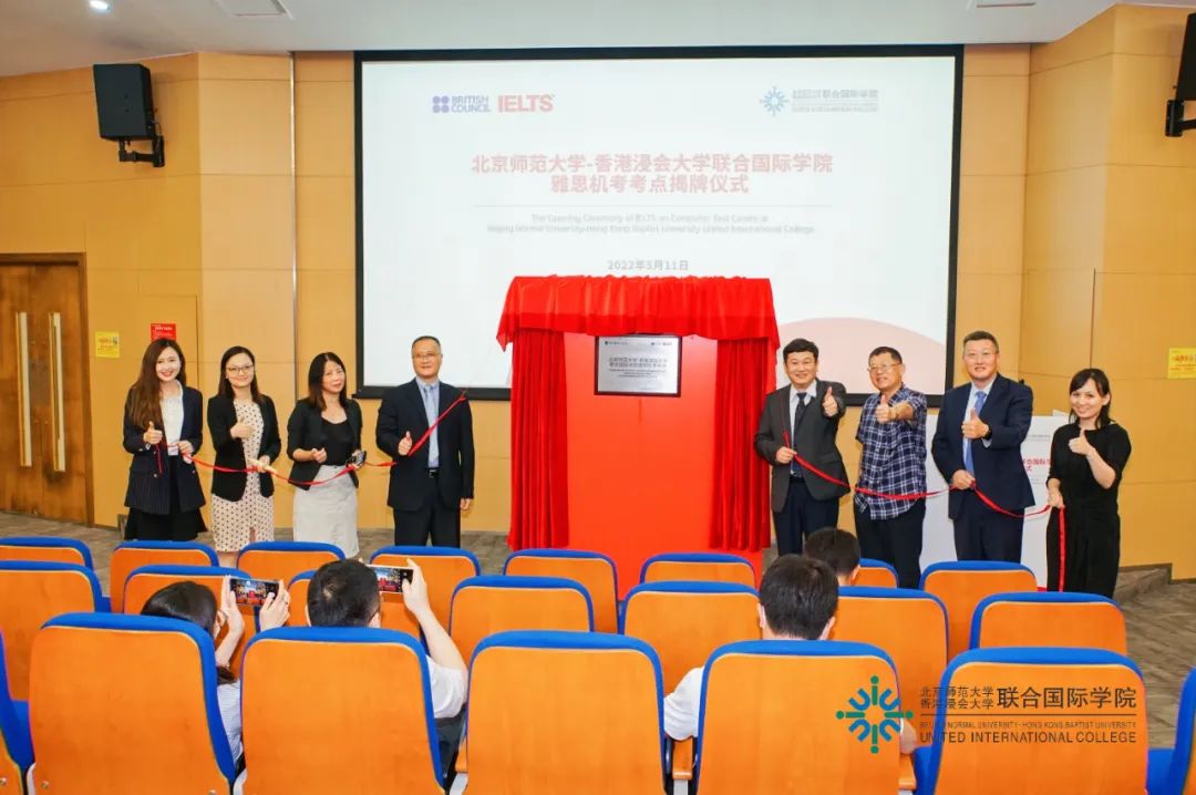 英国文化教育协会华南区考试业务总监陈志军、副总监莫苑芝、考点经理杨涛、市场经理陈雅文等雅思考试主办方代表,与UIC常务副校长陈致,工商管理学部院长刘文斌,校长助理、公共事务办公室主任、继续教育中心处长张韶峰,信息科技服务中心处长、创新中心主任卢宏洲等出席揭牌仪式。
