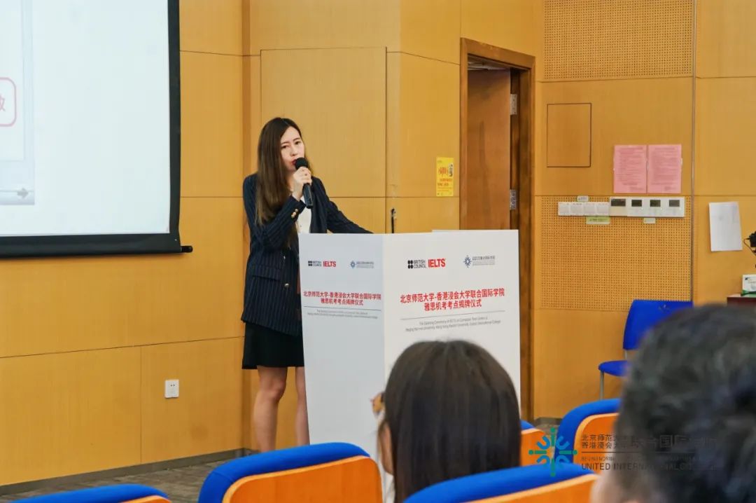 在揭牌仪式之后,英国文化教育协会华南区市场经理陈雅文为UIC学子分享了雅思考试的最新动态。