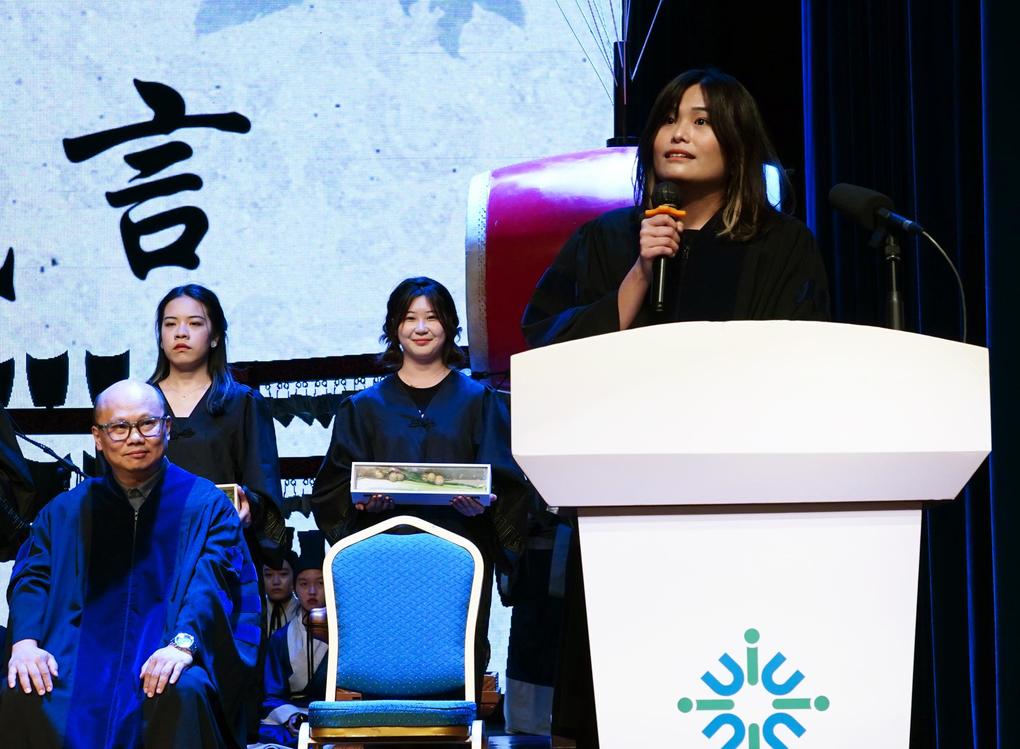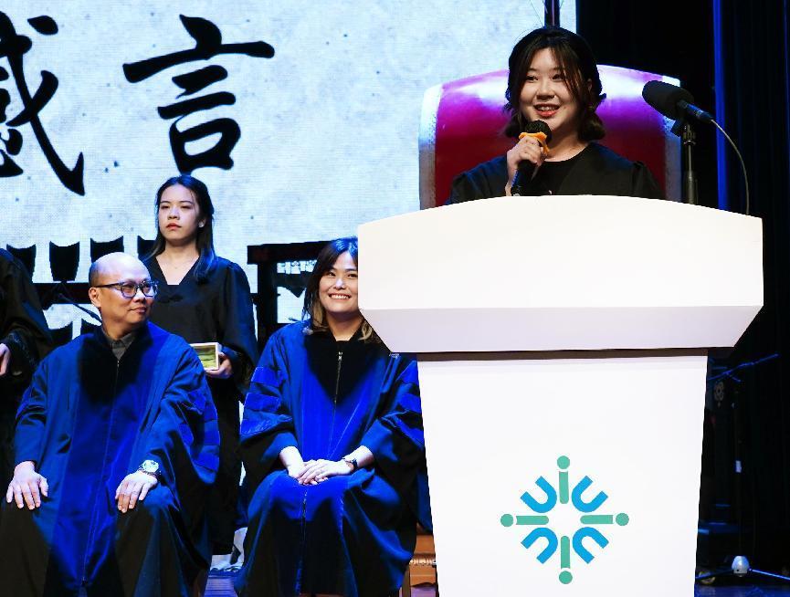 22级新闻与传播学类的新生周小米作为参礼学子代表发表感言。她感恩老师们的谆谆教诲和悉心指导,尤其想感谢自己通识课程的老师——林彩丽博士。林彩丽博士不仅在学业上帮助她,也让她学会如何与自己对话,与世界沟通。周小米也感谢UIC的老师们教会大家永远保持热爱,成为聆听世界,收藏浪漫的“青春冒险家”。