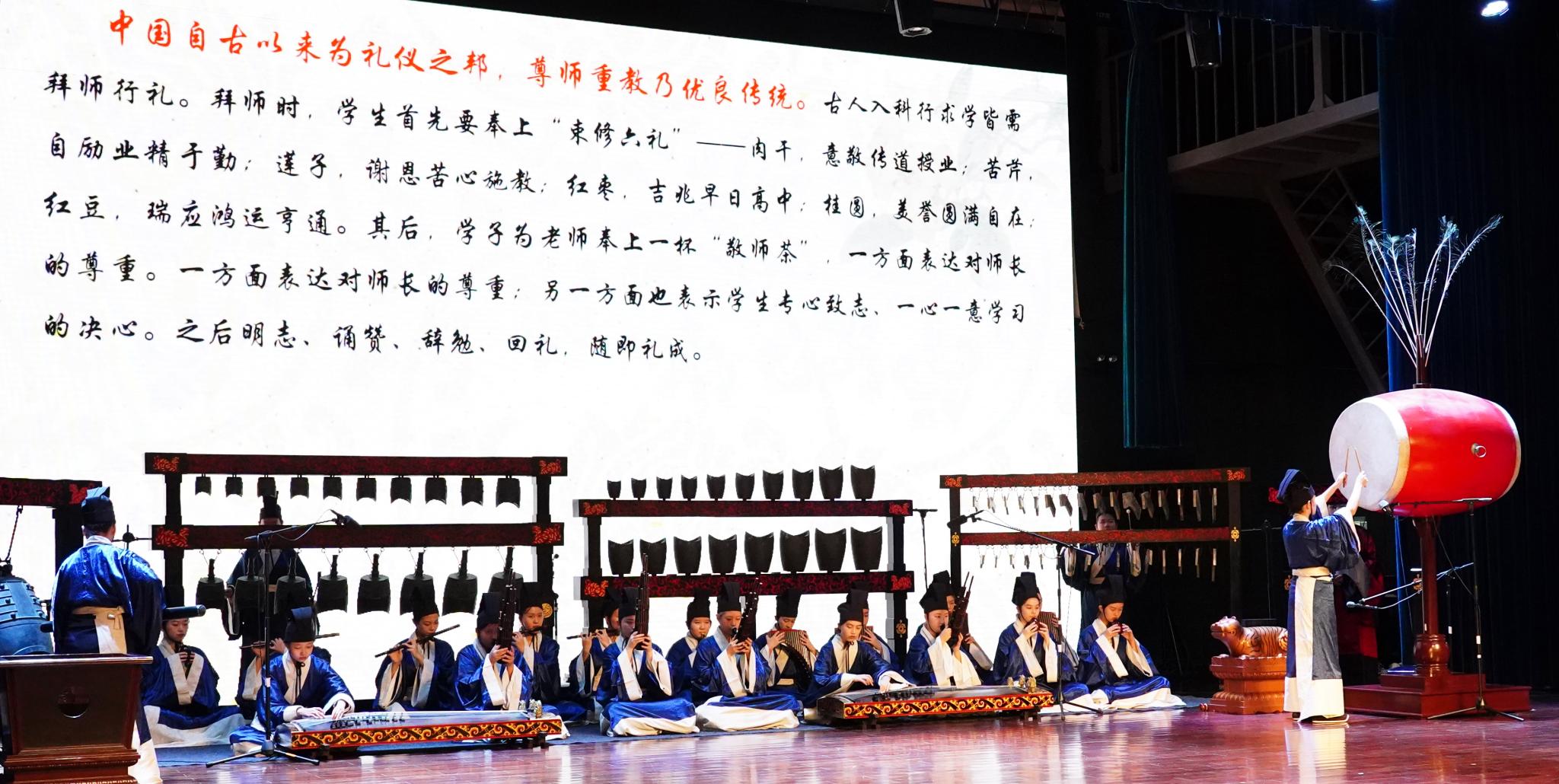 本次敬师礼活动当日恰逢孔子诞辰,敬师礼特别加入了“献舞”以及“颂赞”两个环节向先师孔子致敬。