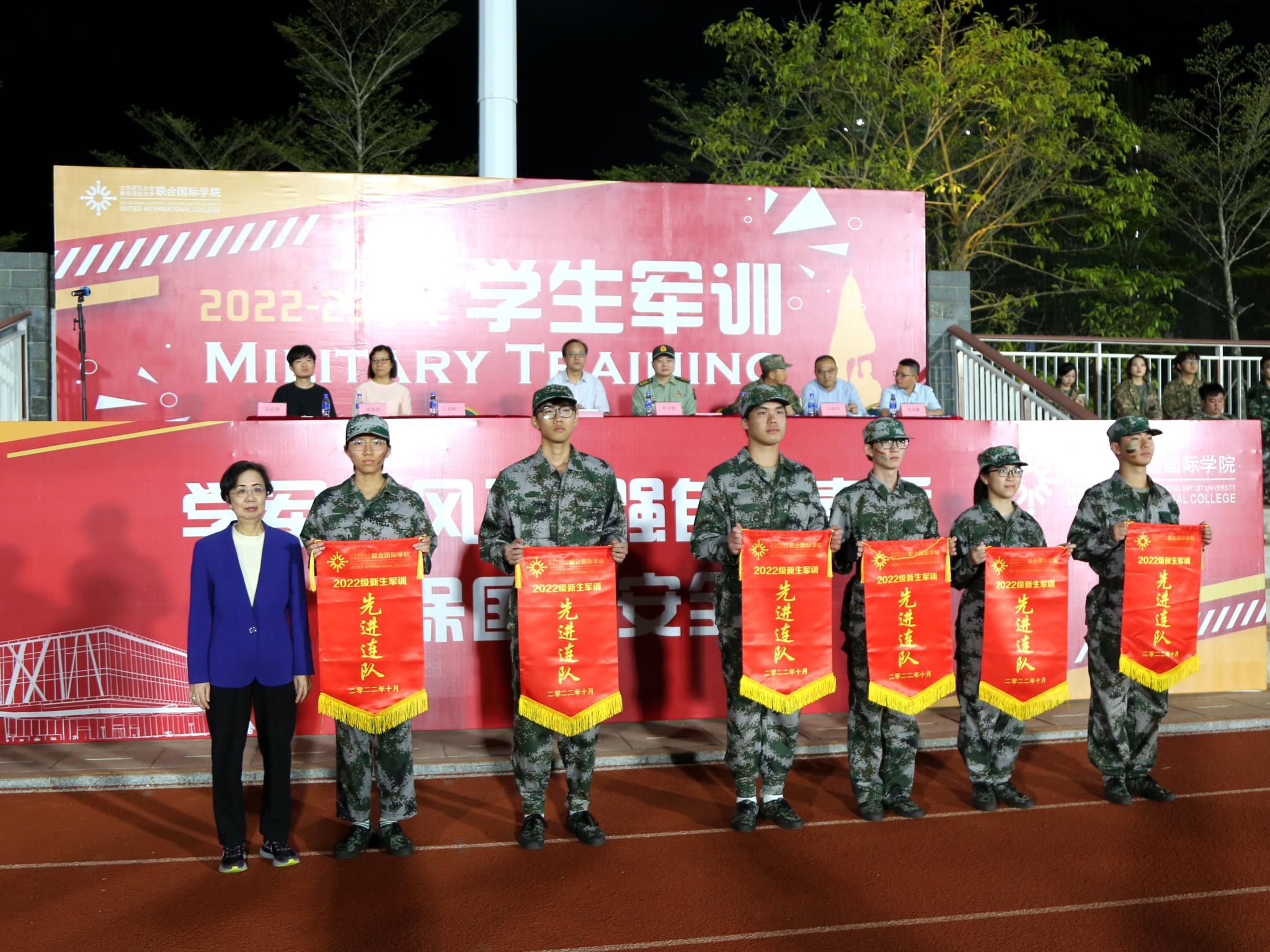 近日,北师港浸大(UIC)大一学生完成军训,在体育公园田径场举行汇报表演。