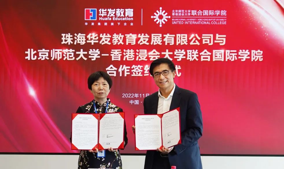 2022年11月17日,北师港浸大(UIC)与珠海华发教育发展有限公司旗下的容闳教育基金会签署“香洲区儿童健康成长支援计划”公益项目合作协议,共同为珠海香洲区儿童健康成长助力。中国科学院院士、欧洲科学院院士、UIC校长汤涛教授与华发教育董事长、珠海市容闳教育基金会秘书长葛志红代表双方签署合作协议。