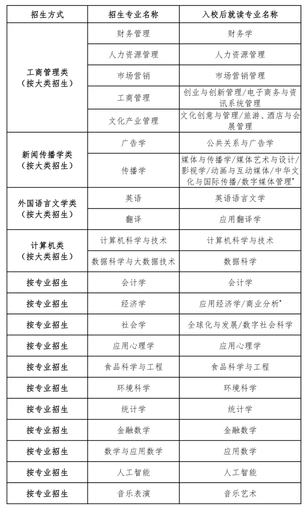 附表:2023年北师港浸大招生专业列表